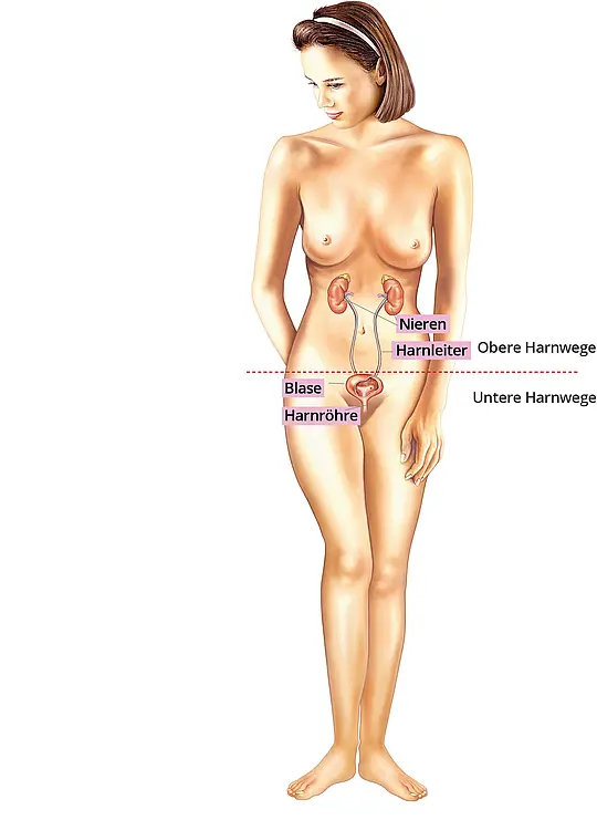 Kommen jedoch Fieber, Rückenschmerzen, Übelkeit und Erbrechen dazu, dann sind die oberen Harnwege – Harnleiter und Nierenbecken – betroffen. Es herrscht Gefahr für die Niere! In diesem Fall muss sofort ein Arzt aufgesucht werden, der Antibiotika verschreibt.