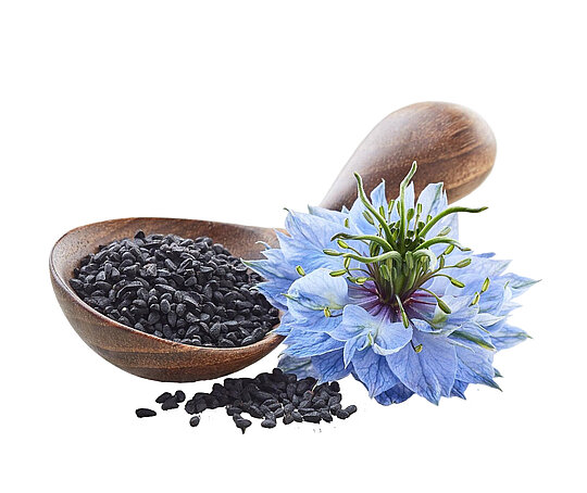 Das Öl aus den Samen des Echten Schwarzkümmels (Nigella sativa) ist in der traditionellen Pflanzenheilkunde Asiens, Nordafrikas und Südeuropas verankert und bekannt als wahres Multitalent für Immunsystem und Haut. Thymochinon, der wichtigste bioaktive Pflanzenstoff im Öl, unterstützt die körpereigenen Abwehrkräfte dabei, sich besser gegen äußere Reize und Allergene zu behaupten.