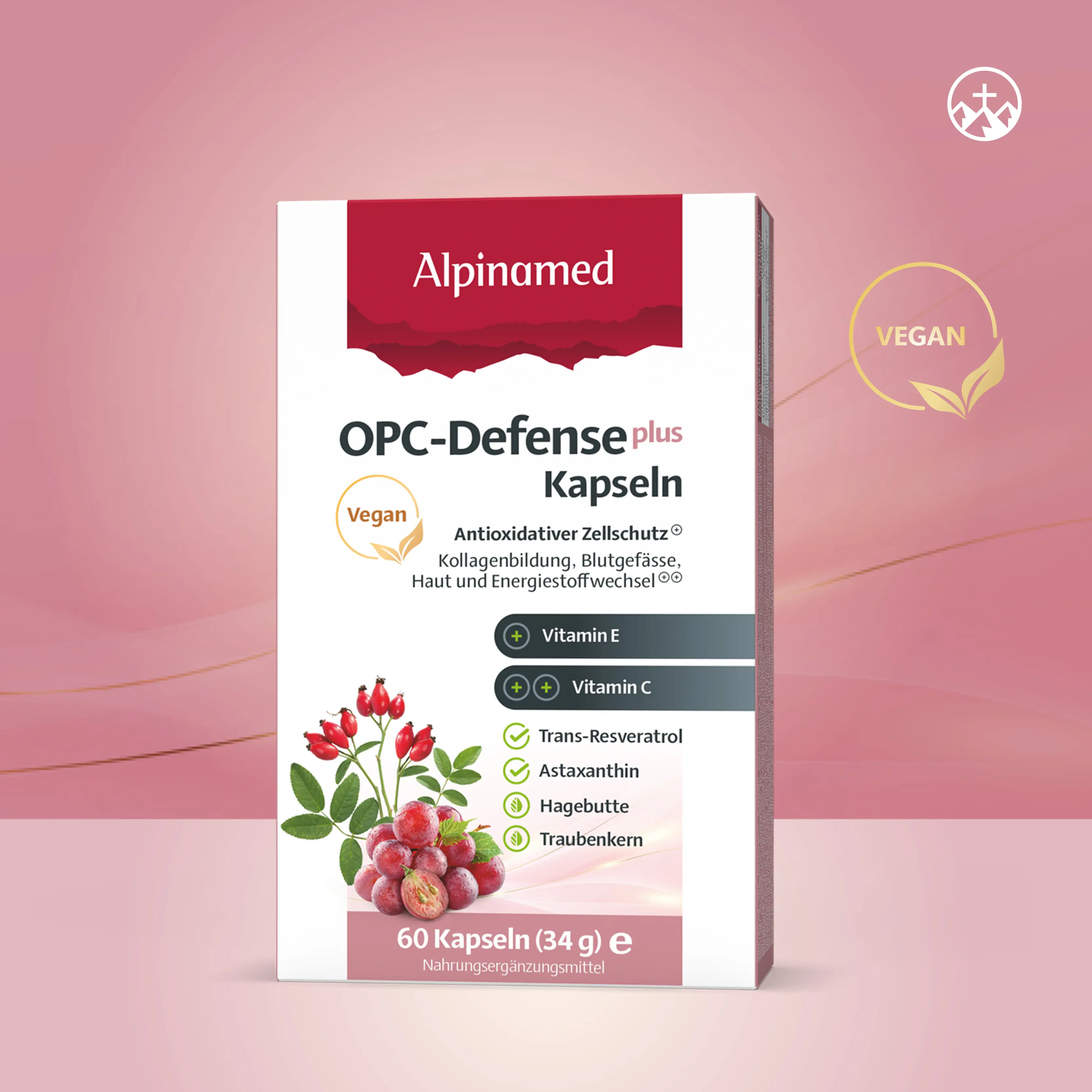 OPC (Oligomere Proanthocyanidine) sind hochwirksame pflanzliche Antioxidantien, die den Körper dabei unterstützen, Zellen vor oxidativem Stress zu schützen. Durch ihre schützenden Eigenschaften gelten sie als wertvolle Ergänzung für alle, die ihre Gesundheit und Vitalität langfristig unterstützen möchten - etwa im Hinblick auf Zellschutz, Kollagenbildung, Haut und Gefäße.